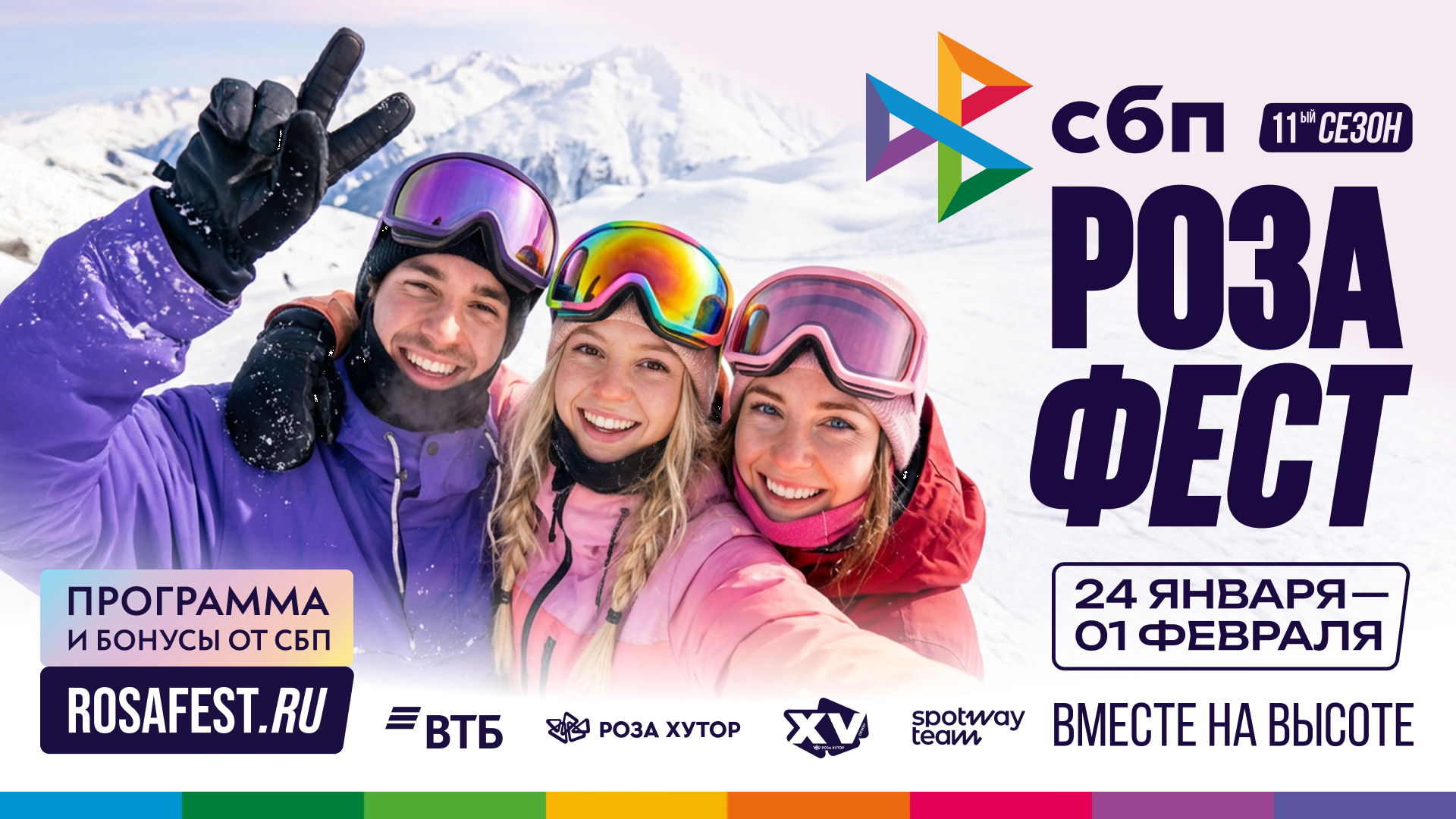 РОЗАФЕСТ x СБП 2026 – пройдет с 24 января по 1 февраля на горном курорте Роза Хутор. Здесь каждый день обещает быть насыщенным и незабываемым — гостей ждёт катание в самый снежный период, соревнования для райдеров всех уровней, масштабная Большая Игра с призами, музыкальные концерты хедлайнеров и апре-ски с видом на горы. Программа объединит участников в единое комьюнити и подарит то самое состояние, ради которого сюда возвращаются: все как физически, так и эмоционально – вместе на высоте!