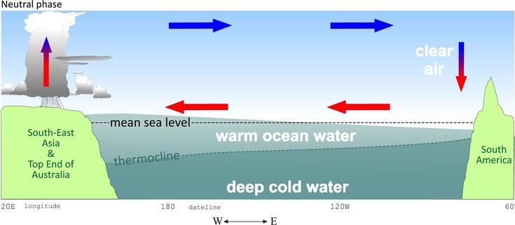 Вследствие передвижения больших водных масс из-за влияния пассатов уровень моря у берегов Индонезии примерно на 60 см выше, чем у берегов Перу. Кроме того, вода там примерно на 10°C теплее. Эта теплая вода является предпосылкой для сильных дождей, муссонов и ураганов, которые часто случаются в этих регионах.