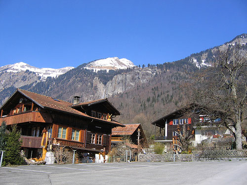 В городе есть музей деревянной скульптуры, а при нем магазин, где продаются изделия ручной работы от весьма простых до шикарных скульптур стоимостью в несколько тысяч франков. Действительно, дома там такие, что, идя по улице, только башкой крутишь направо-налево. Хотя визитной карточкой Бриенца почему-то считается та самая церковь на холме. Да, смотрится она очень эффектно на фоне озера и гор, но таких в Швейцарии тьма.