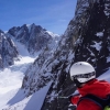 Ухожу траверсом на боковую часть кулуара, снег волнами меняется с жёсткого на мягкий, но моему ультракрафту это по фигу, отпускаю его вниз. Как по заказу – склон расписан дугами по бокам, а середина целая: «спасибо друзья!»Ближе к середине склона кондиция становится самая катабельная, но уклон уменьшается, кажется, что стоишь на месте, хотя стучащая по шлему стропа рюкзака, свидетельствует, что скорость о-го-го! «Еххуууууу!!!!!»