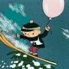 Прямо с гребня ныряю в белое ничто, уехавших вперёд не видно, даже силуэтов, следы на склоне не читаются. Глаза не может зацепиться за ориентиры, их просто нет! Еду в прямом смысле на ощупь, первые пара-тройка дуг корявые, но потом как будто в голове переключился тумблер: поворот, поворот, прыжок – опора ушла из под доски, не беда - снега столько, что встреча с землёй проходит, как в перину.