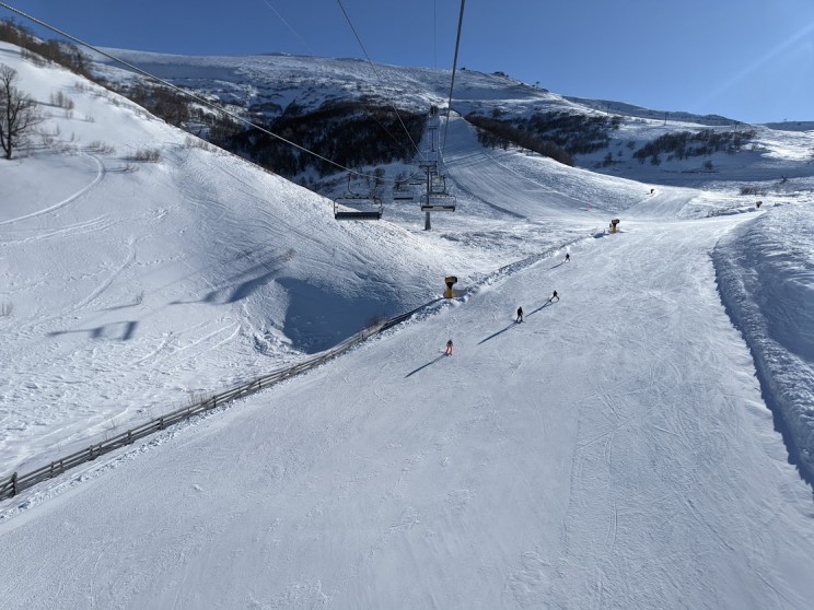 На Хацвали две очереди. Нижняя без трасс, но при достаточном уровне снега можно выкатиться прямо в поселок. На верхней части пара трасс и лесной фрирайд, но лес достаточно густой , надо иметь это ввиду. Катание через буреломы - так себе развлечение.