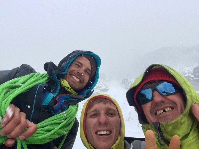 Команде пришлось совершить сложный подъем по склону, прежде чем они достигли старта линии спуска. Длина линии спуска всего 300-400 метров, но это очень крутой спуск - около 55°.![]()