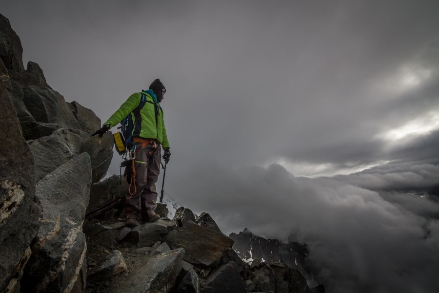Последние 500 метров перепада до вершины идут по узкому снежному гребню, при сильном порыве ветра, в принципе можно, осмотреть ущелье, в которое ты полетишь, пытаясь зарубиться ледорубом, но в наши планы это не входило. Мы взяли хороший темп, обгоняя связку за связкой. Не знаю, хорошо ли быстро ходить в альпинизме или нет, но мы перли в гору, как будто не прошли уже 1500 метров со всеми перепадами. Через 30 минут подъема мы вышли в окно, где открывались невероятные виды на рассвете. Солнце поднималось над горами, разливая свет по долинам и хребтам, раскрашивая серые ночные краски, это, конечно, не купить ни за какие деньги. Хочется замереть и просто смотреть вдаль.