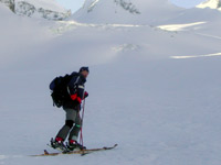 Но дважды по одному склону стреляет редко, это должно утешать, если бы надо было утешать… Напротив, я наполнен ликованием. Свободен! Наконец-то отправился в настоящее бэккантри/ски-тур… Нет очередям, нет чегетским буграм! Да здравствует вольная жизнь… Долой моторы! В рюкзаке термос, буханка хлеба и сухофрукты. У Макса, плывущего впереди, навалом домашнего сала, примус и заварка…. Мысленно пляшу, как Том Сойер на своем личном острове.