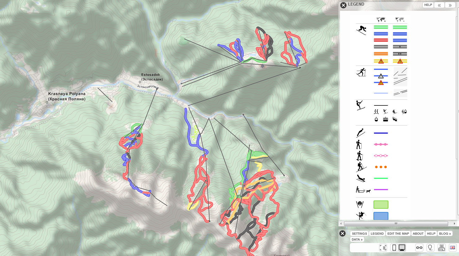 Открытый проект карт (Opensnowmap.org), куда желающие могут вносить свои маршруты. Можно найти как карты курортов, так и маршруты для бэккантри. Если проект будет развиваться и дальше, то может стать довольно интересным.