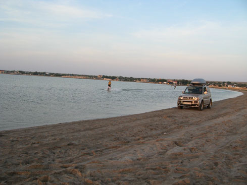 Местные жители будут передавать через поколения историю про маленький серебристый джип и девочку на доске, скользящую за ним по волнам, связанных только тонким фалом…. Двадцать кругов вокруг лимана выдерживает среднестатистический вейкер, наши же экстремалы этим только разминались.