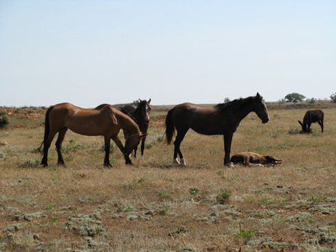 А стада лошадей, которые так и просят называть их мустангами. Они пасутся в степи, совершенно не обращая на нас внимания, плавно перебирая длинными коричневыми ногами и только косят по сторонам огромными влажными глазами.