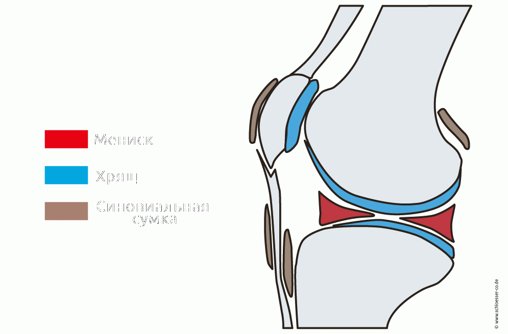 — Тут, все в комплексе. Повреждённая часть мениска заклинивает, допустим, между трущимися суставными поверхностями. Это вызывает отёк хряща, то есть вот первая причина боли, потом разорванная ткань мениска тянет весь мениск, а тот за собой капсулу сустава, капсула при этом сильно иннервируется, это вызывает дополнительную боль. Всё это сопровождается выделением дополнительной синовиальной жидкости, которая может давить, сдавливать подколенные сосуды и нервы. Это тоже причина боли. Воспаление синовиальной оболочки может быть, и оно сильно иннервируется и тоже болит.