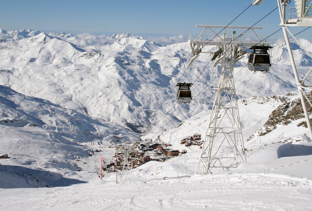 - чуть правее, верхняя станция подъемника Солир и самый большой перекресток Трех долин - шесть подъемников и начало более десяти трасс разной сложности.
