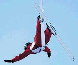 Одной из главных сенсаций Олимпиады-2002 стали победы швейцарского прыгуна с трамплина Симона Аммана. Он опередил всех фаворитов и на 90-метровом, и на 120-метровом трамплине. Россия в этом виде была далека от наград |