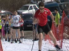 Не растаявшего снега набралось около километра. Трассу еще пришлось подправлять лопатами. Двигаться сложно, но фанаты лыж рады, наверное, уже последней возможности продлить зиму. /Видео./