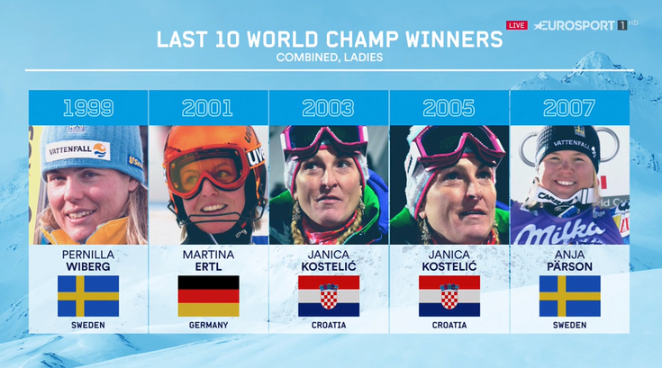 Сегодня на чемпионате мира в шведском Оре Венди Холденер отстояла свой титул чемпионки мира в альпийской комбинации. Швейцарка одержала победу с результатом 2: 02,13 сек., опередив на 0,03 сек. Петру Влхову из Словакии. Бронза досталась норвежке Рагнхильд Мовинкель (+0,45).![]()