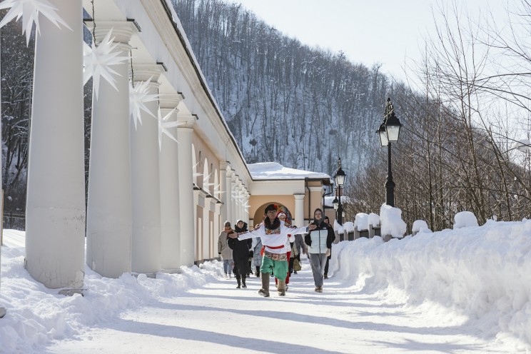 На территории «Моей России» расположены 11 комплексов с экспозициями, посвященными культуре и традициям разных регионов. Локальные тематические мини-экскурсии в павильонах этнопарка дополнят программу Масленичной недели.