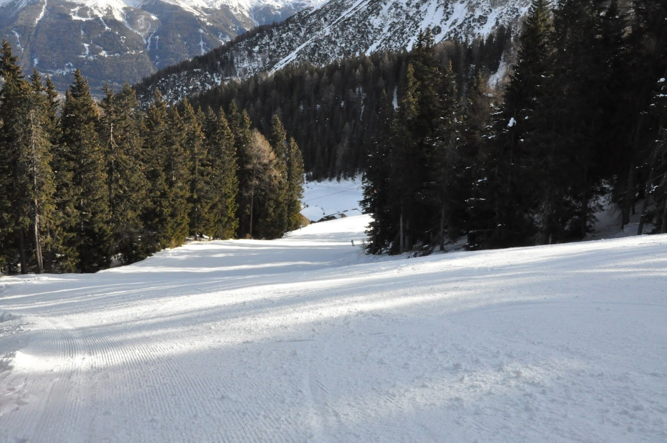 Катались в трех местах. Собственно в Випитено, 7 км от дома. Подальше Рачинес, 18 км и Ладурнс, 17 км. Зоны небольшие, довольно стереотипные. Внизу бесплатная парковка, наверх поднимает кабинный подъемник (в Ладурнсе кресельный), наверху снуют креселки. Трассы синие и красные. Во всех трех зонах есть приличная санная трасса до самого низу и лыжный спуск к парковке. Везде лыжные школы, общепит, прокат снаряжения. Снегу, конечно, было маловато, но кататься можно. Не спеша, по-стариковски.