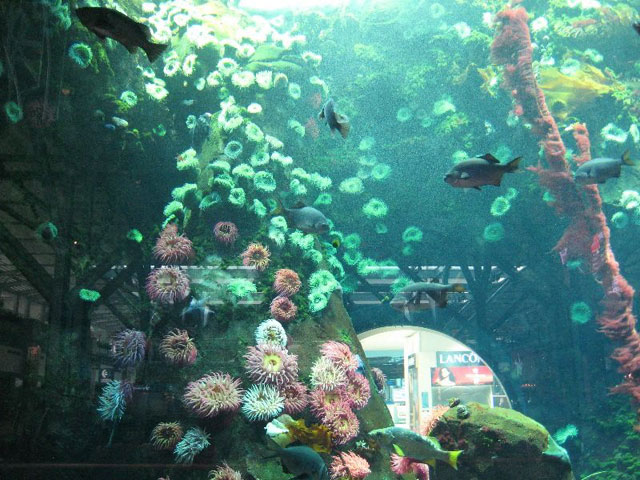 Большие аквариумы с рыбками напоминают о том, что рядом Океан.