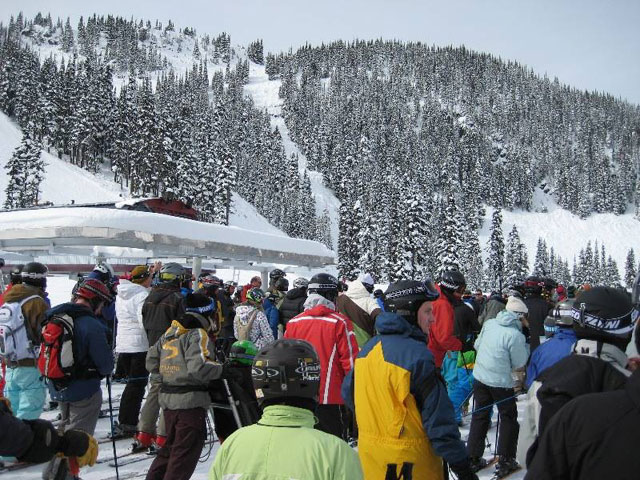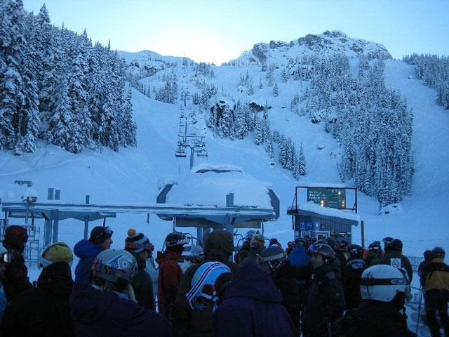 Огромные очереди собираются только перед открытием подъемников (после снегопада). Адреналин у желающих порвать целину просто кипит.