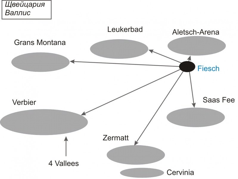 4) Деревня в долине реки Рона (Сьон, Мартиньи). Катание PDS через Champery, Crans-Montana, Zermatt, Saas Fee, Leukerbad, AletchArena, 4Valees.