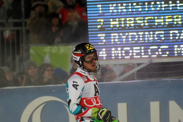 Вечерняя слаломная гонка в Шладминге — юбилейная, 20-я по счету, вызывающая у зрителей огромный интерес. Традиционно слаломный стадион Планай-арена, вмещающий 50000 болельщиков, забит до отказа. Склон в Шладминге считается одним из самых сложных — сегодня около 20-ти спортсменов не смогли финишировать, либо допустили ошибки во время прохождения трассы.![]()