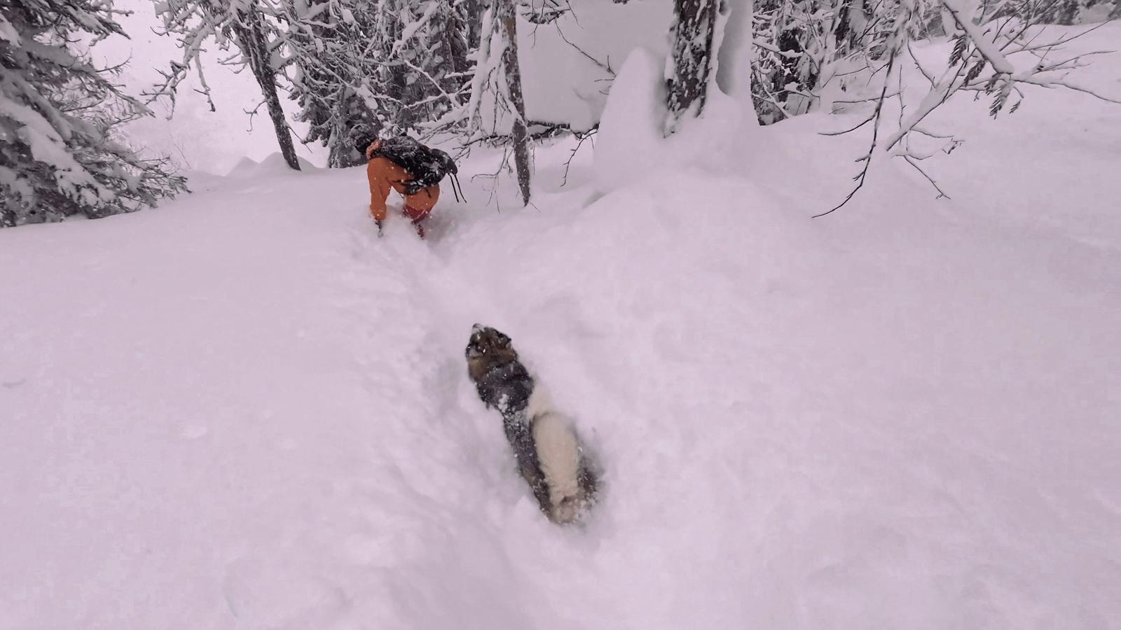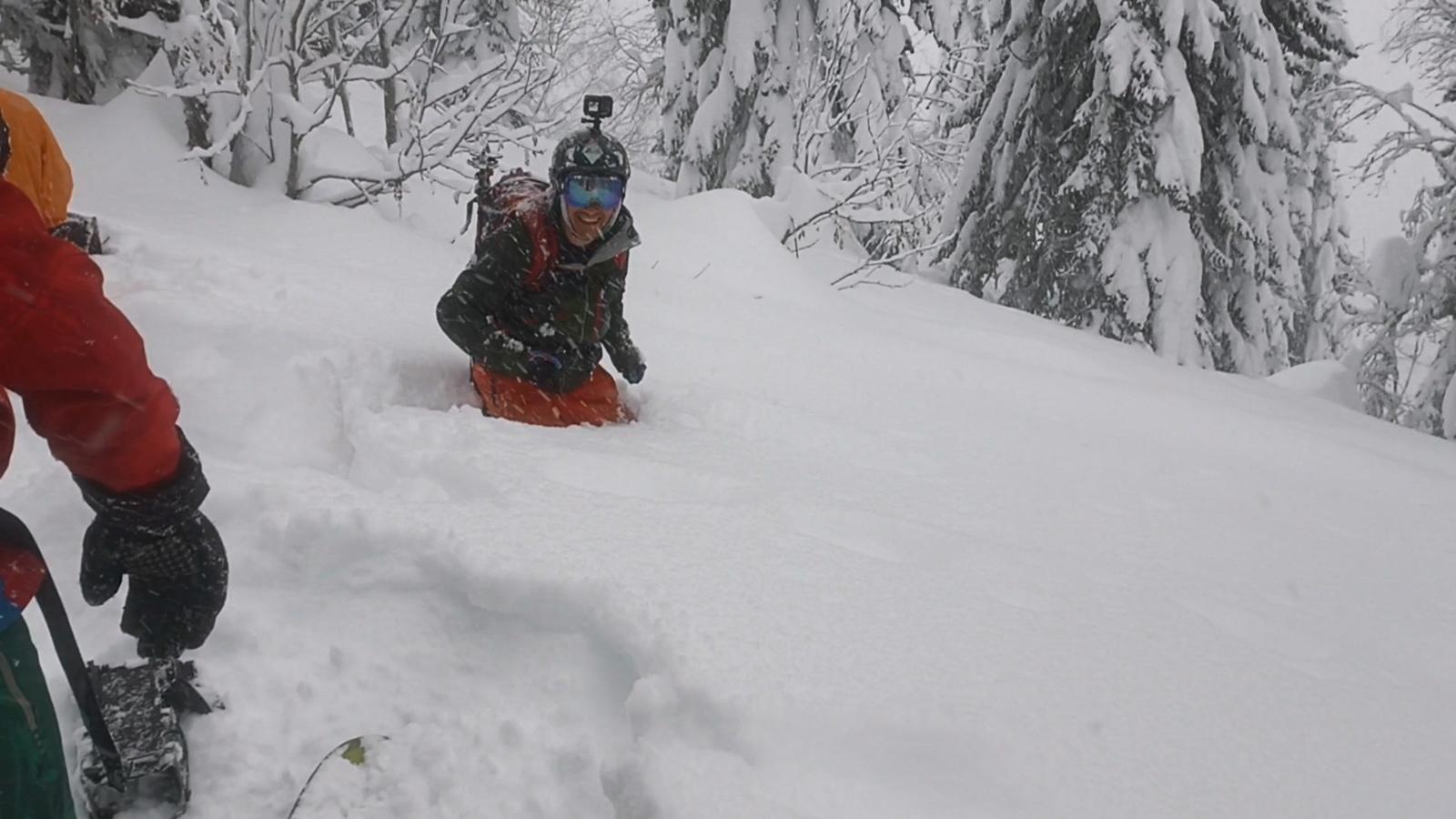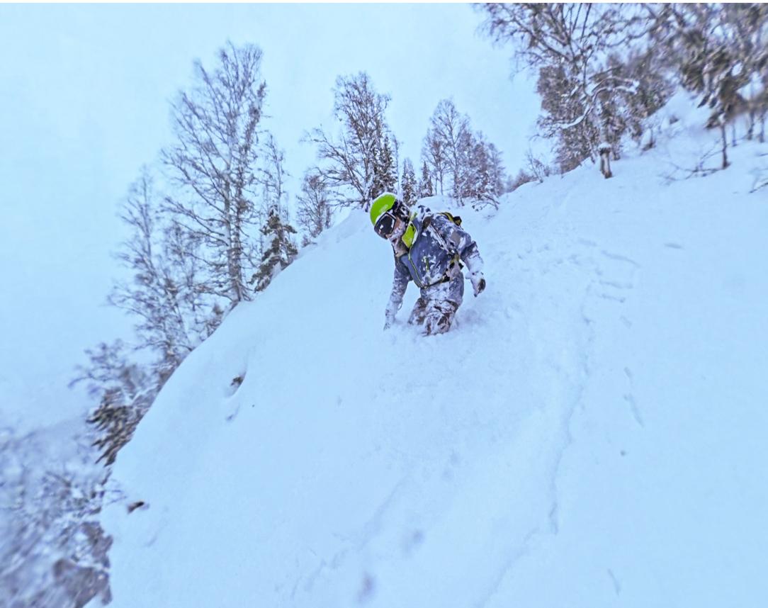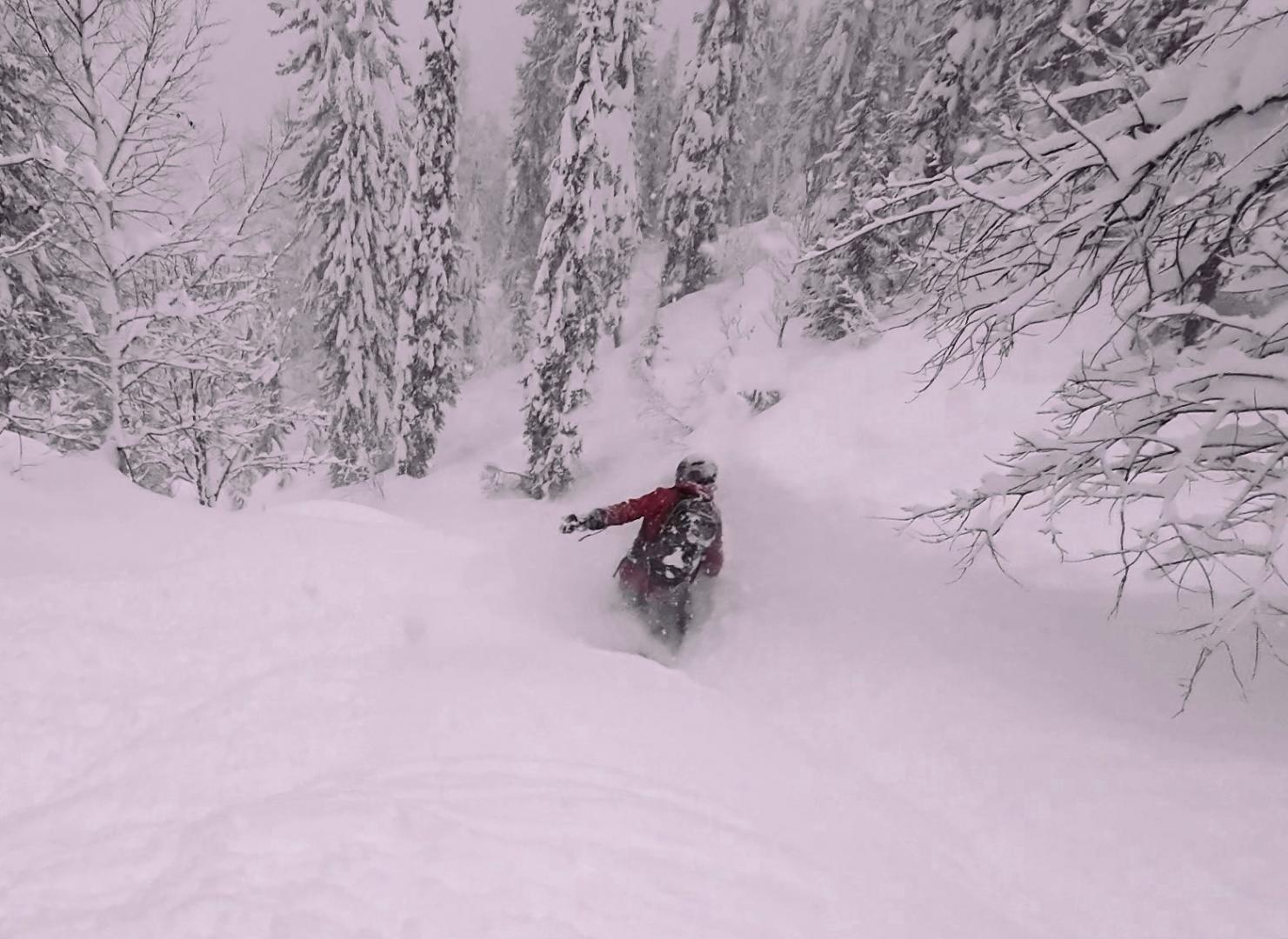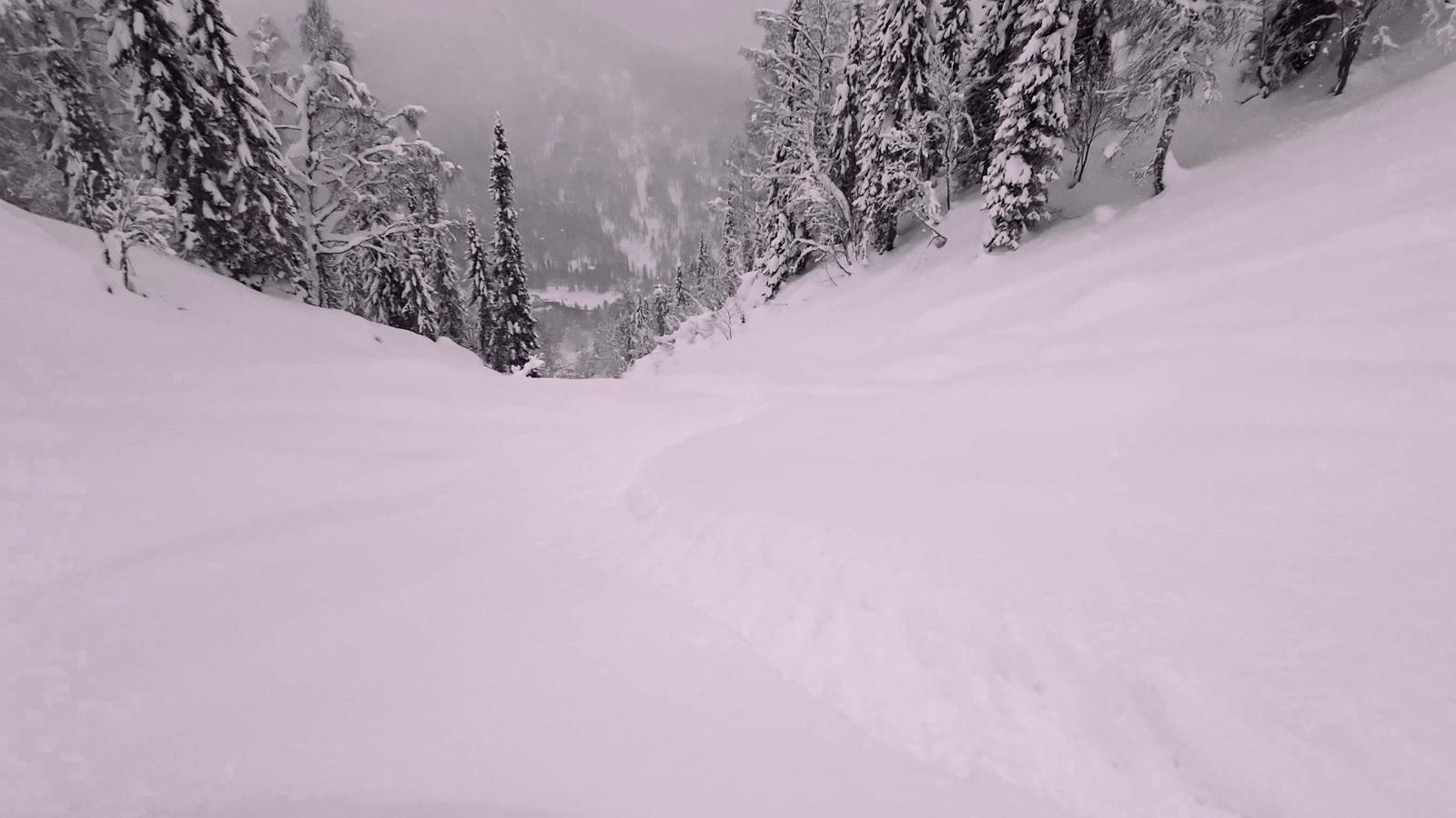 Но поскольку горшочек варил снег не переставая, на следующий день тропу занесло почти в ноль, и мне дали очередной шанс. В итоге в этой поездке я освоил и кик-терны, и выбор правильного наклона тропы. Конечно, не идеально, но на третий взрослый разряд по троплению, наверное, потяну ;))
