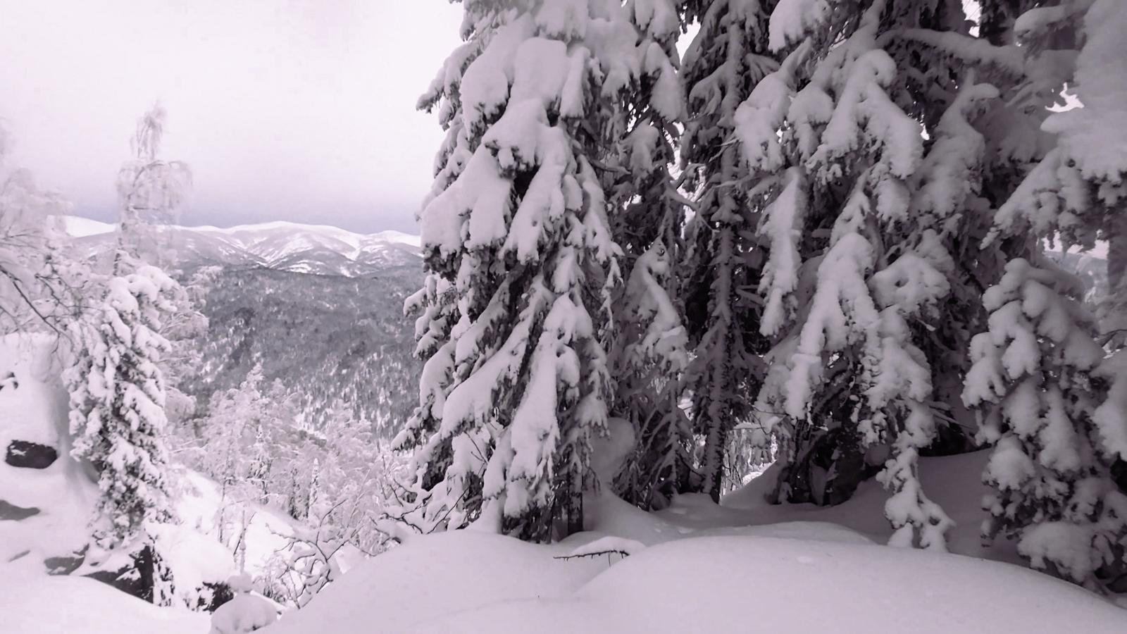 Горшочек начал варить, и варил без перерыва всю неделю. Даже суперстойкие прямые и обтекаемые как ракеты саянские ели, изо всех сил старались оставаться прямыми принимая на себя тонны снега.