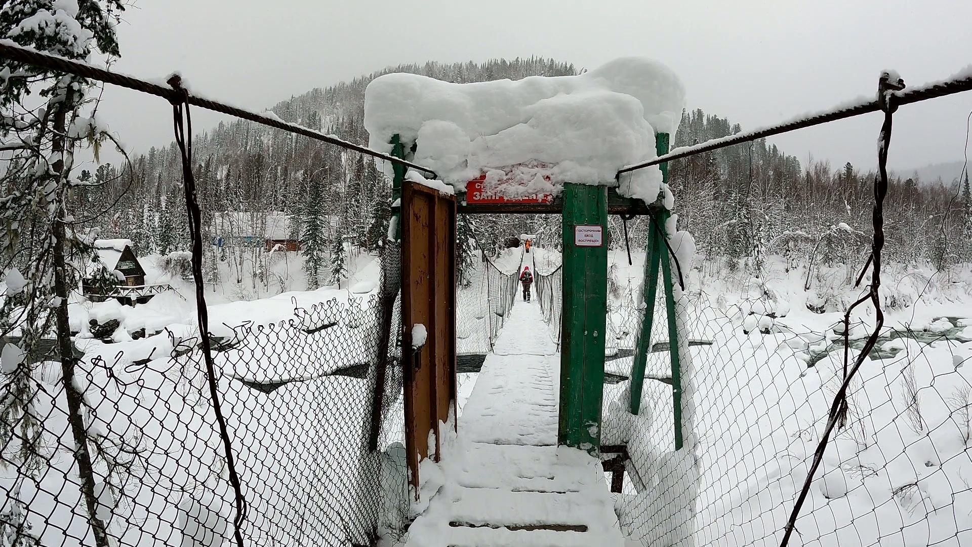 Скитур по снегоходным следам. Чуткий и фотогеничный подвесной мост и наша База.
