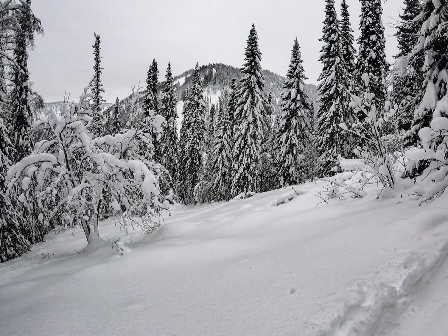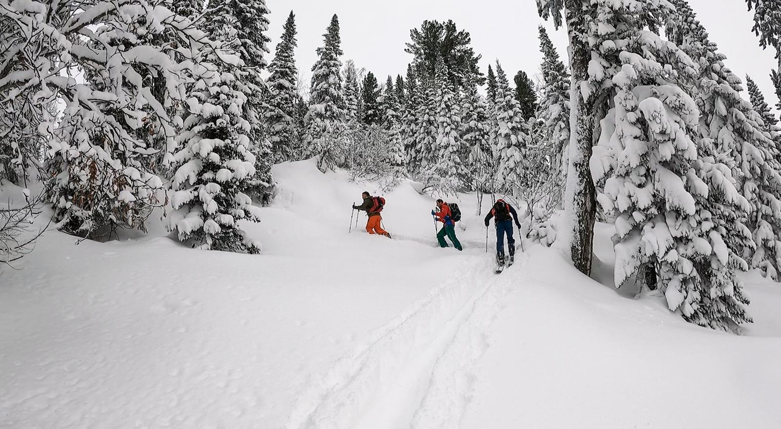 Собственно эти хождения наверх среди идеально отстроенных елей, бесконечные снежные пейзажи и есть основной терапевтический эффект бэккантри.