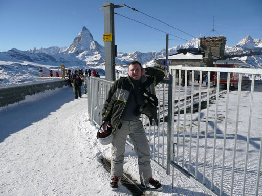 Во-первых, всё время проводил в горах, катался в своё удовольствие и, конечно, был в Швейцарии в Церматте, так как не побывать там просто нельзя, ведь граница точно проходит по хребту горы между Италией (Червиния) и Швейцарией (Церматт).