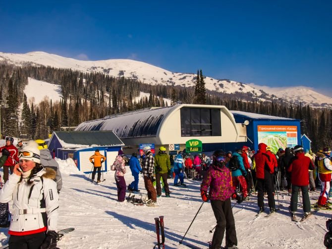 Та самая прелюдия к последующему акту получения удовольствия. Можно посмотреть по сторонам и полюбоваться красотами Шерегеша.