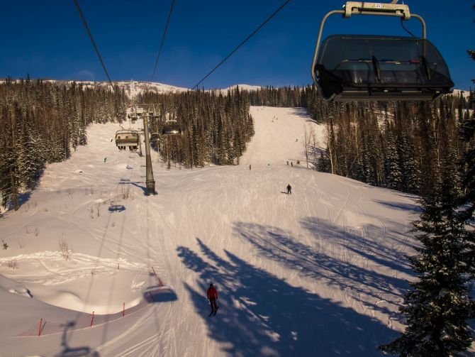 Погода: -200 С, ясно, склоны жёсткие, после обеда слегка подразбиты, народу много, потому что выходные.