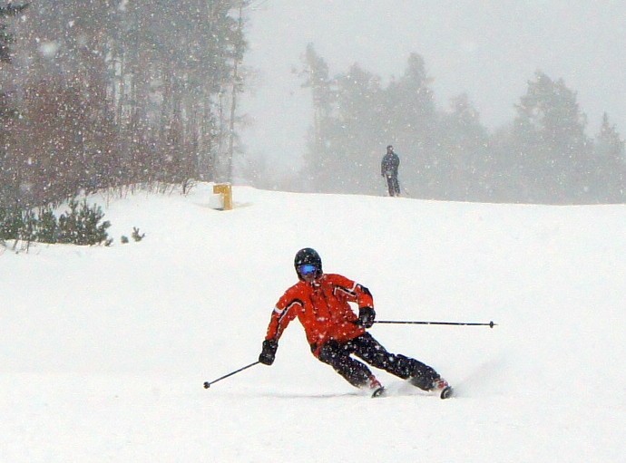 Разведка закончена, выходим на более крутой склон. Разгон, захожу с носка, как учили, закантовался, отжался, перекантовался, дуга к дуге… И снова убеждаюсь, что ни в одной фазе поворота не могу найти каких-то особенностей, каких ждешь от жесткой лыжи с незнакомой геометрией. Всё, как на обычных карвах или слаломках, которым были посвящены последние много-много лет катания.