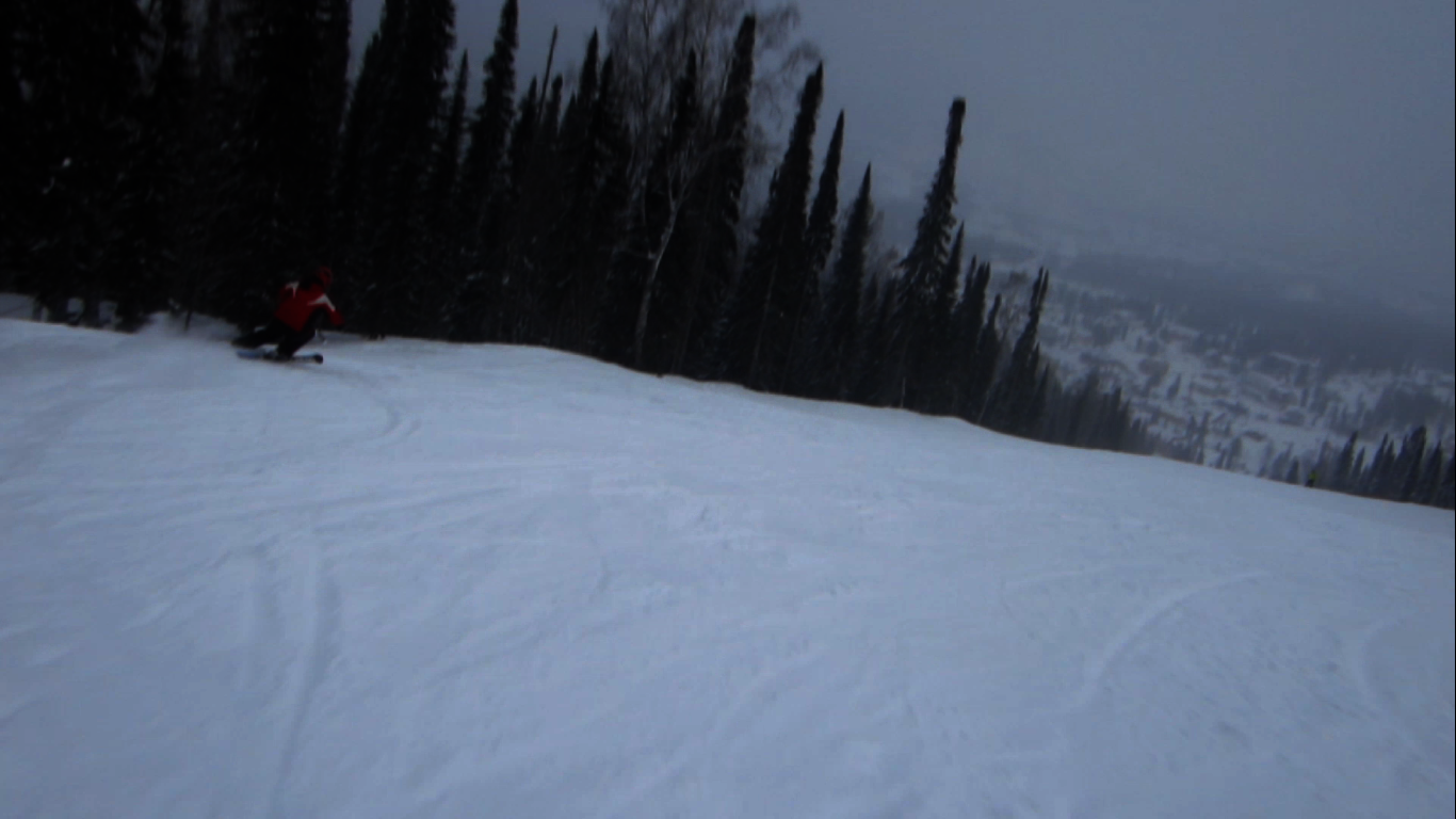 Тестировал в Шерегеше, в основном на трассе «Булочка». Температура была -15-17, с утра трасса была хорошо подготовлена, жёсткость – выше средней.