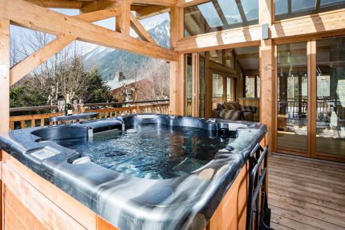 Шале Les Brimbelles находится в 10 минутах езды от центра курортного городка Шамони-Мон-Блана. На террасе, откуда открывается вид на гору Монблан, установлена 7-местная гидромассажная ванна.