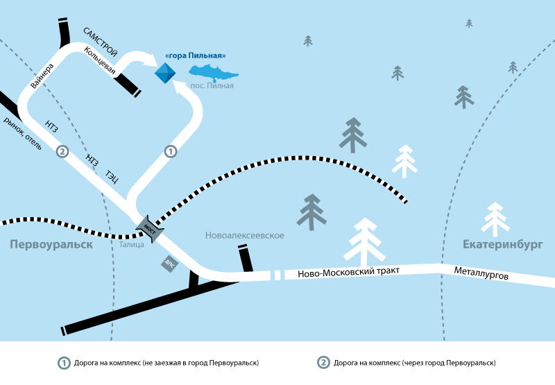 Горнолыжный комплекс расположен в 38 км от столицы Урала Екатеринбурга, в черте города Первоуральск. На автомобиле нужно ехать в сторону Перми (от Екатеринбурга). Или на электричке до Первоуральска, с пересадкой на местный автобус до поселка Пильная.Телефон: (34392) 44-88-5. Если до склонов горы Пильной решено добираться на автомобиле, то оптимальный маршрут из Екатеринбурга будет такой: выезд из Екатеринбурга с тороны Перьми до поворота на г. Первоуральск (главный ориентир — дорожный указатель на Первоуральск). На повороте свернуть направо и въехать в черту Первоуральска, минуя пост ДПС. При съезде с моста (через ж/д пути) требуется повернуть направо - отсюда до горы Пильная всего 6 км (сначала дорога идет вдоль железно-дорожных путей, потом на развилке повернуть налево и проехать частные дома, оставляя пруд справа. Ехать до автостоянки и административного корпуса горнолыжного комплекса "Гора Пильная".