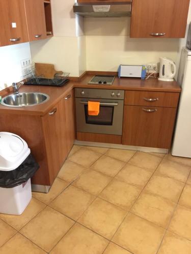 Кухня оснащена духовкой, тостером и кофемашиной.