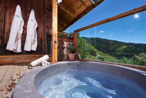 Улучшенный 4-звездочный курортный отель Ubergossene Alm с крытым бассейном и спа-зоной площадью 1700 кв. м расположен в деревне Диентен, рядом зоной катания Хохкениг.