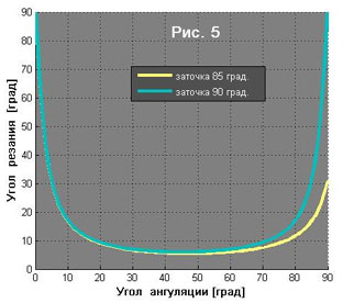 Между этими двумя углами и углом резания существует простая геометрическая зависимость, образец которой графически представлен на рис.5.