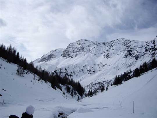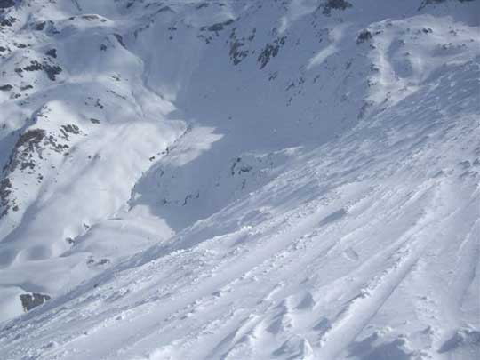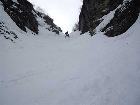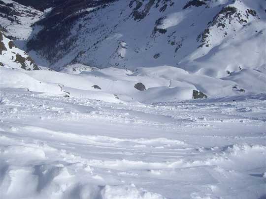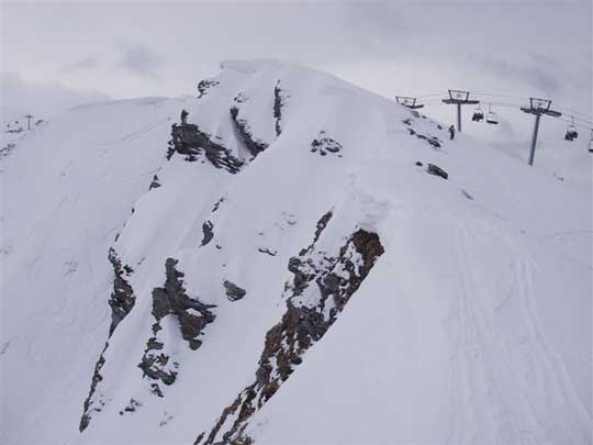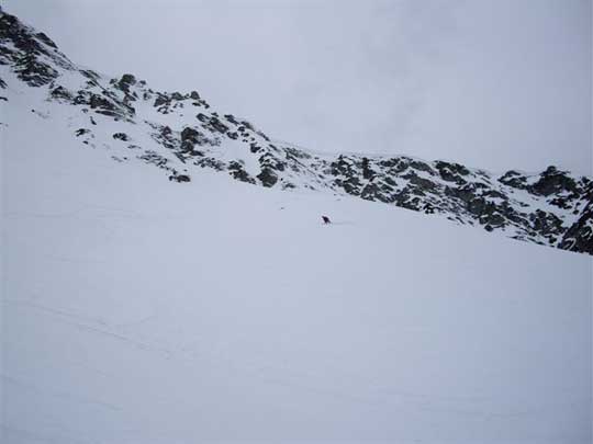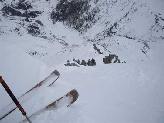 Для разминки прямо с Roche de mio идет вниз кулуар "массового" спуска.