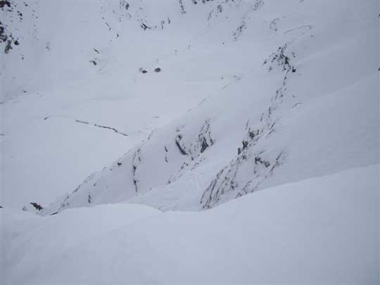 Пробалансировав по нему как канатоходец, можно подобраться к спуску в кулуар.