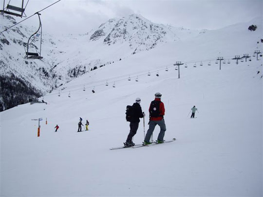 Но нам-то хотелось пройти кулуар самого длинного французкого спуска. Поехали снова наверх.