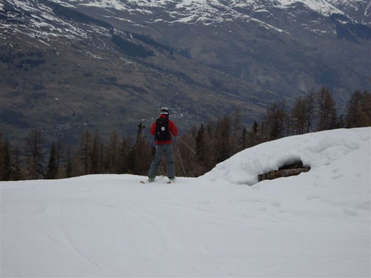 Спуск до порога отеля. Но нижние склоны - полный неликвид.