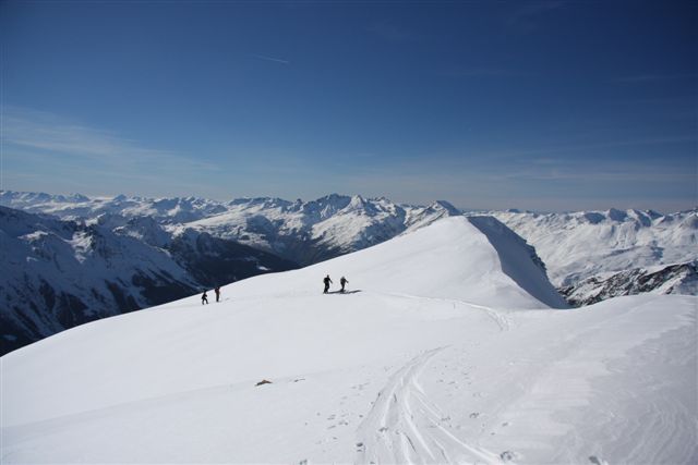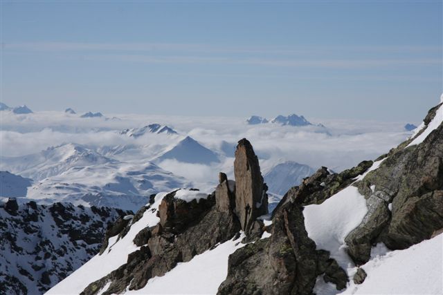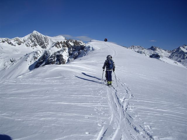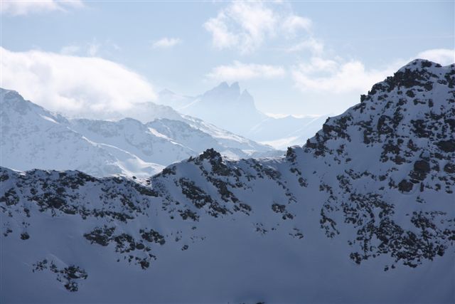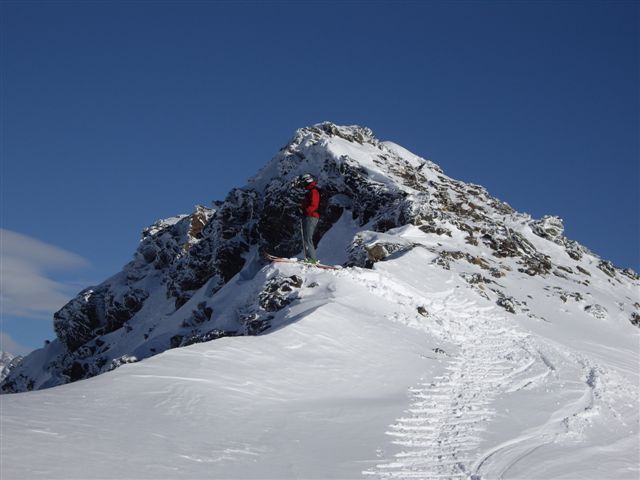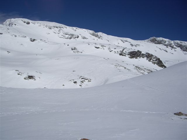 По виду можно подняться на правый гребень (Rocher de Pierre d'Arbine -2647 м) с аппетитными кулуарчиками, хотя в описаниях этих коротких маршрутов нет.