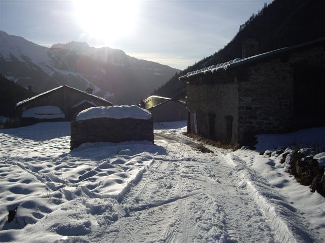 После домиков Les Fontaine (хотя видел только табличку Le Grot) пошла асфальтированная горная дорога, покрытая снегом.