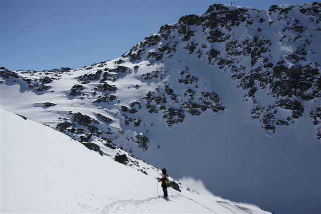Вообще в тех же краях 2 года попадали на жесткач за малым исключением. Ну конечно что то где то находилось - но как то не так чтобы очень много и очень пухло. А вот в этом году в феврале и начале марта оторвались почти по полной. Было бы по полной -если б не оттепель с дождем 27 - го февраля - все низы мокрухами пошли и нижние кулуары практически отменились.