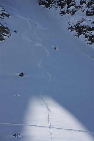 Почему повезло или нет - потому что по большому снегу при ограниченной видимости катание там это....... п-ц какой то. С учетом того, что место знали уже очень неплохо - 1 человек пострадал от лавинки в лесу (ничего серьезного - но несколько дней катания было испорчено), сам чуть не влетел (не засыпался). Погода как калейдоскоп улыбок - ни фига не спланируешь и не понятно где и что ожидать.