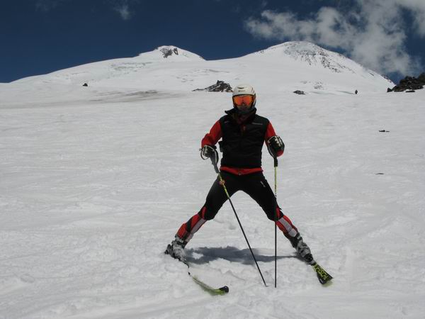 [page]Итак, заезд по полям Эльбруса летом. Ради интереса могу показать длинную видеозапись, снятую на ходу. Там свист ветра, вид трясущихся на скорости лыж с разных ракурсов, раскачивающийся горизонт с прекрасными видами Главного Кавказского хребта, приветливые, как показалось, реплики многочисленных встреченных восходителей, выбравших действительно оздоровительный вариант – на своих двоих. Как мы пожалели, что приехали на старты, как говорится , «впритык»!
