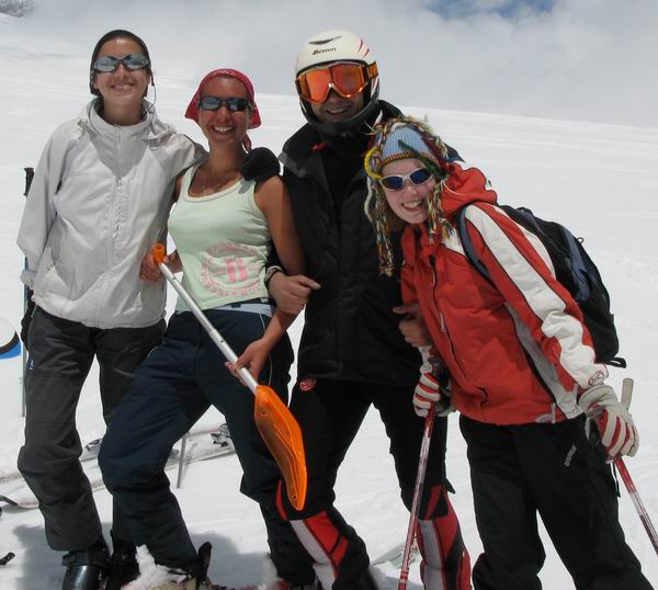 В метафизическом видоискателе вы можете наблюдать хорошеньких девчушек, почему-то роющих в снегу огромную яму. Спуск экстренно прекращен для выяснения обстоятельств. Ах, эти – милые создания – студентки-гидрологи МГУ, ах. Да, роют шурф. Да, иногда катаются. Да, бар работает. Да, мальчиков мало, ах. Но ах, французские канатчики… ce gentil garsonett… Договариваемся на глинт в баре вечером.