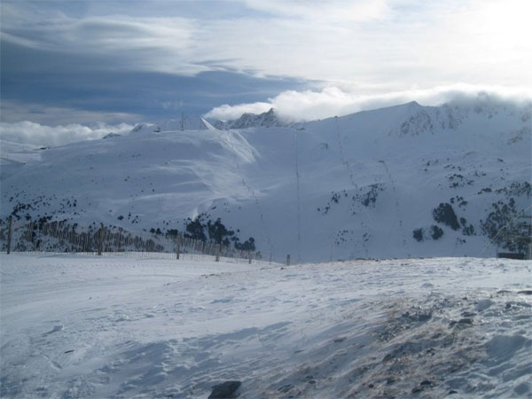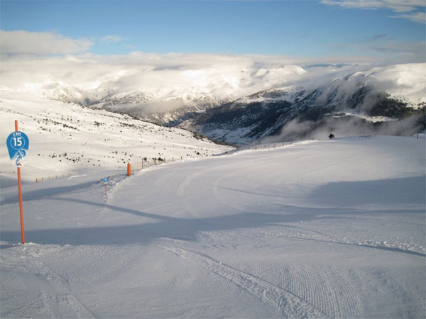 Во вторник с утра снег, потом солнце, всю среду солнце а в четверг после обеда, начался снег, склоны, как и Пас де ля Каса, просто завалило снегом, иногда наверху, где фуникамп, просто не видно, куда спускаться. Но спускаешься метров на 20-30 ниже по склону из тучи и все видно прекрасно.