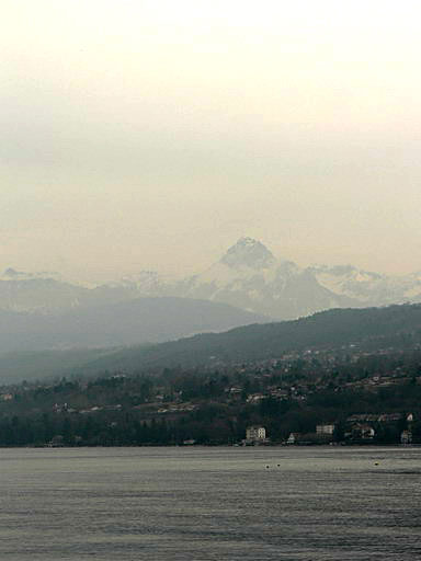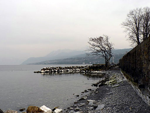 Озеро расстроило погодой. Классическим видом отражающихся в голубой воде гор полюбоваться не удалось: погода начинала портиться, и небо заволокло дымкой. Горы сквозь дымку виднелись, как и швейцарская Лозанна (Lausanne) на противоположном берегу, но об отражении и голубой воде не могло быть и речи.