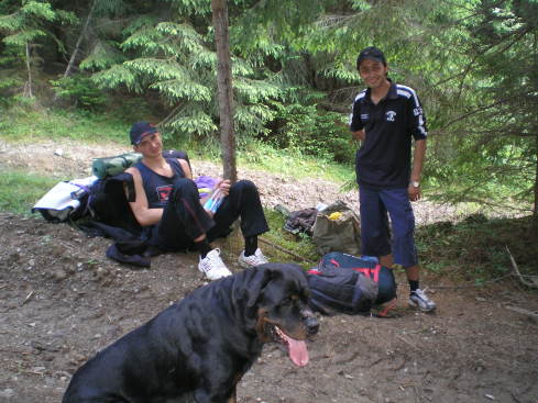 Подъем на Пип-Иван делю на три этапа. Основные места ночевок: возле лесничества, общежитие (калыба) на горной долине Шурин, у озера Маричейка. Самый тяжелый, на мой взгляд, до Полоныны, потом легкий до озера Маричейки и последний с выходом к обсерватории «Белый Слон». Удобнее всего на Пип-Иван от лесничества идти дорогой через горные долины Веснарку и Шуринску. Перейдя поток Погорелец (левый приток Шиберного) сразу между хозяйствами поднимаемся дорогой в северном направлении. Обычно мы всегда идем до озера, там ночуем, а утром выдвигаемся к вершине и сбегаем потом сразу назад. В этот раз мы за 7 часов со всеми перекурами, обедами, перекусами рванули на вершину, а потом сбежали до озера, где и переночевали, у нас просто не было другого варианта, но об этом позже….. Как всегда, чтоб не напрягаться и не растратить силы, темп взяли не быстрый, с остановками и перекусами, тем более подъем в этот раз мы разбили не на два раза, а на раз, так как нас местные предупредили, что в воскресенье будет сильная гроза, град и ветер. Вот так по дороге отдыхали, не забывали фотографироваться.